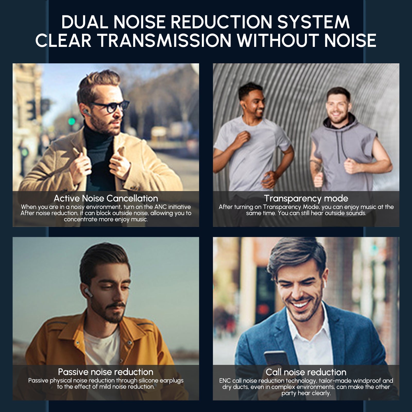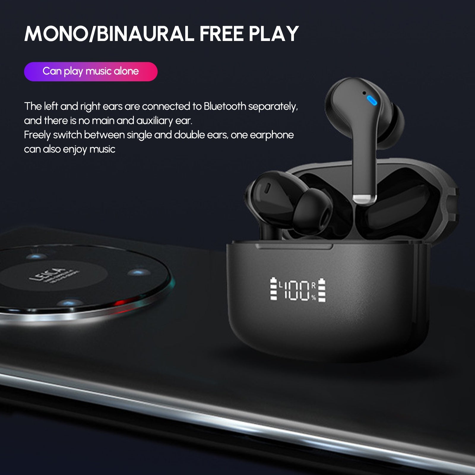[LED Power Display]Equipped with a dual earbud power display case, you can view the remaining battery life of each earbud in real-time when opening or closing the case.